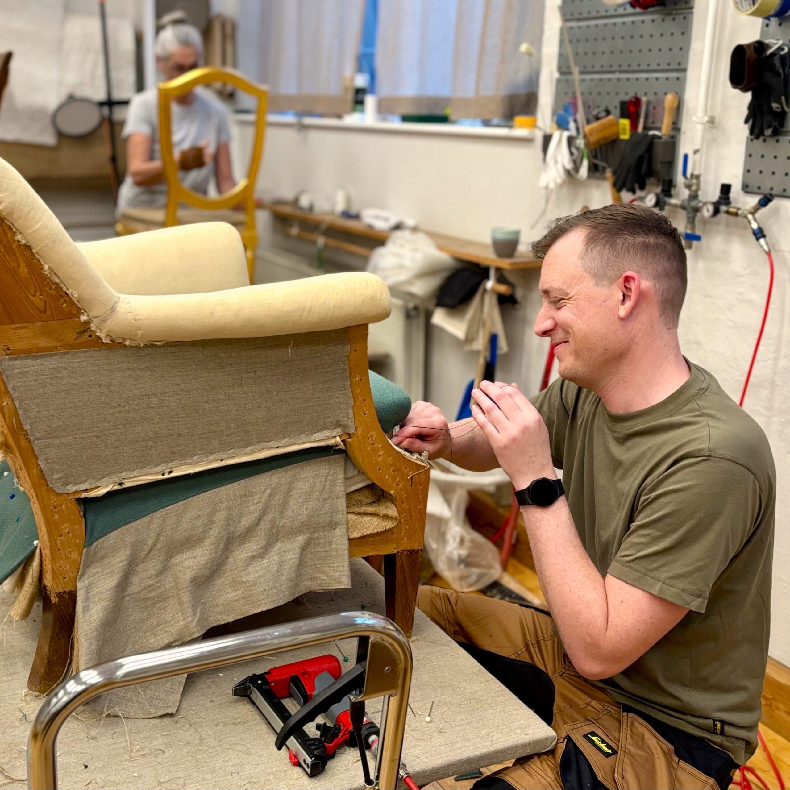 Hos Tapetserer Mette Palsteen arbejder vi med traditionelt håndværk i ordets bedste betydning. Stort set alt polstrerarbejde på Østerbro udføres i hånden med “originale” materialer (samme type materiale møblet blev “født” med). Dette sikrer at det færdige resultat er så tæt på møblets oprindelse som overhovedet muligt.